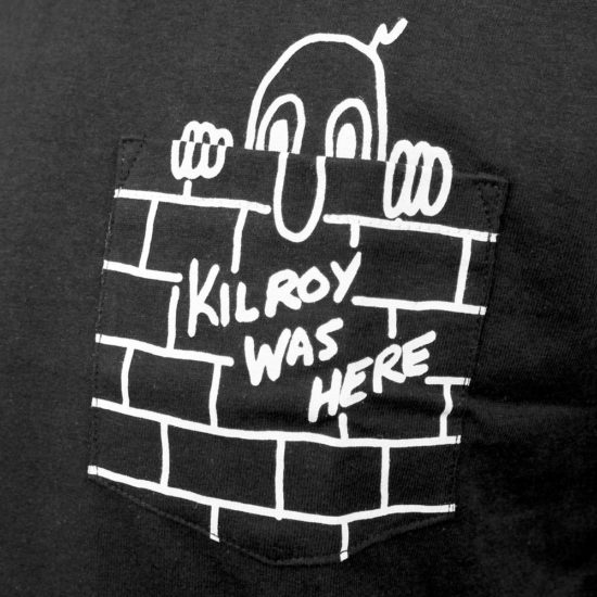 Kilroy Was Here design with a twist – custom pocket t-shirt with hidden pocket print. Ever wondered what’s on the other side of the wall, you’ll have to buy one to find out.