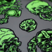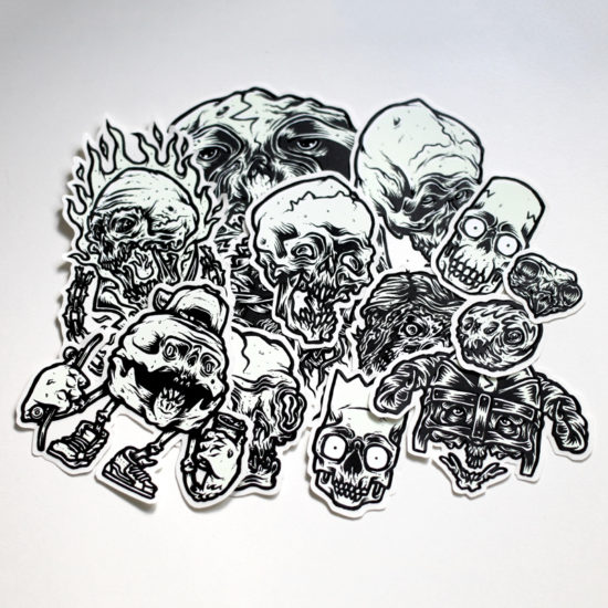 Glow in the dark sticker pack – Each pack contains 13 screen printed skull stickers.